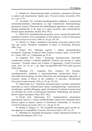 1. Минакир, П.А., Джурка Н.Г. Методологические основания пространственных исследований в экономике / П.А. Минакир, Н.Г. Джурка // Вестник Российской академии наук. - 2018. - Т. 88. - № 7. - С. 589-598. EDN: XZTWBV