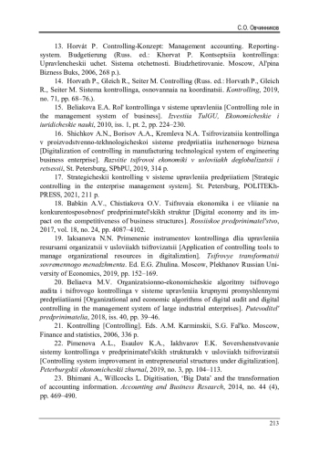 12. 	Шешукова, Т.Г. Научные аспекты представления о контроллинге / Т.Г. Шешукова, С.О. Овчинников // Развитие учетно-аналитической и контрольной системы в условиях новых стратегий хозяйствования: сб. науч. ст. / Перм. гос. нац. исслед. ун-т. - Пермь, 2023. - Вып. 14. - 215 c.  EDN: WNBPZP