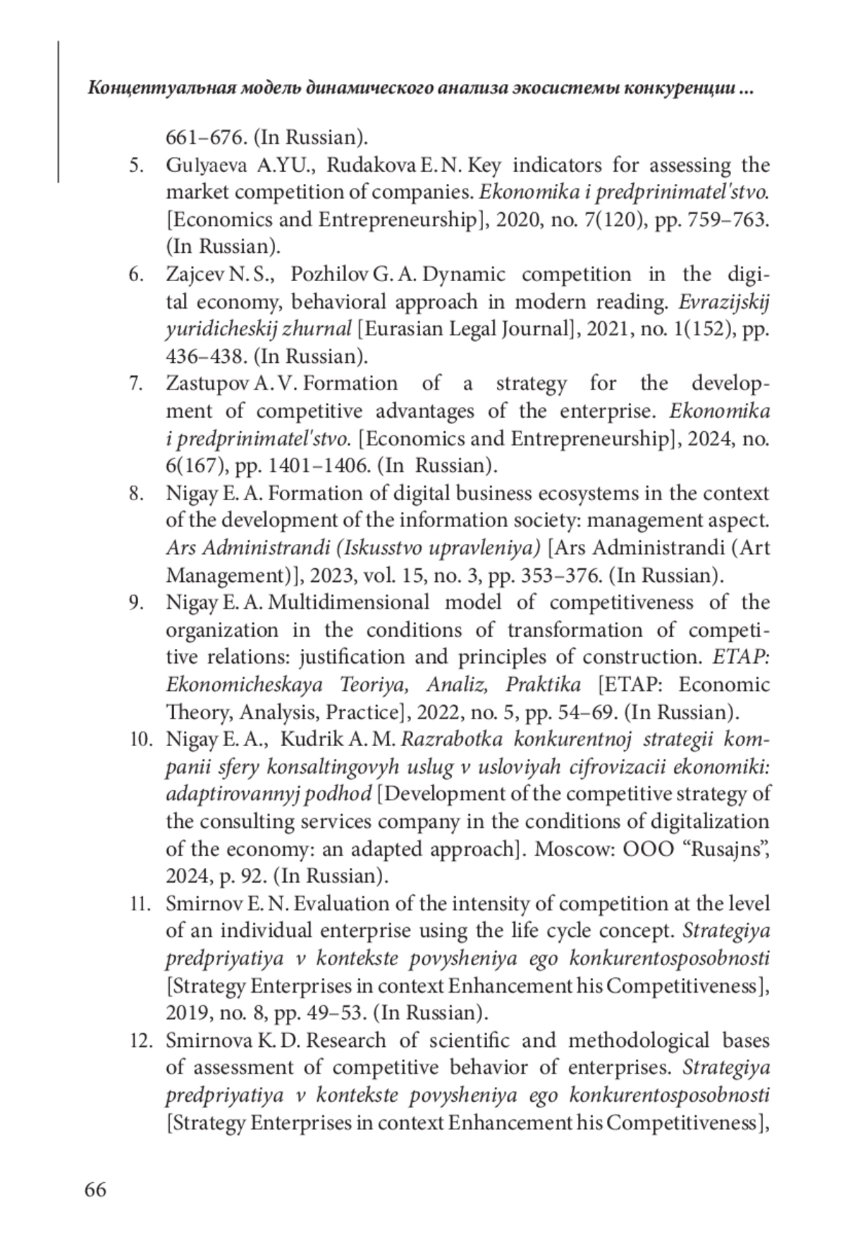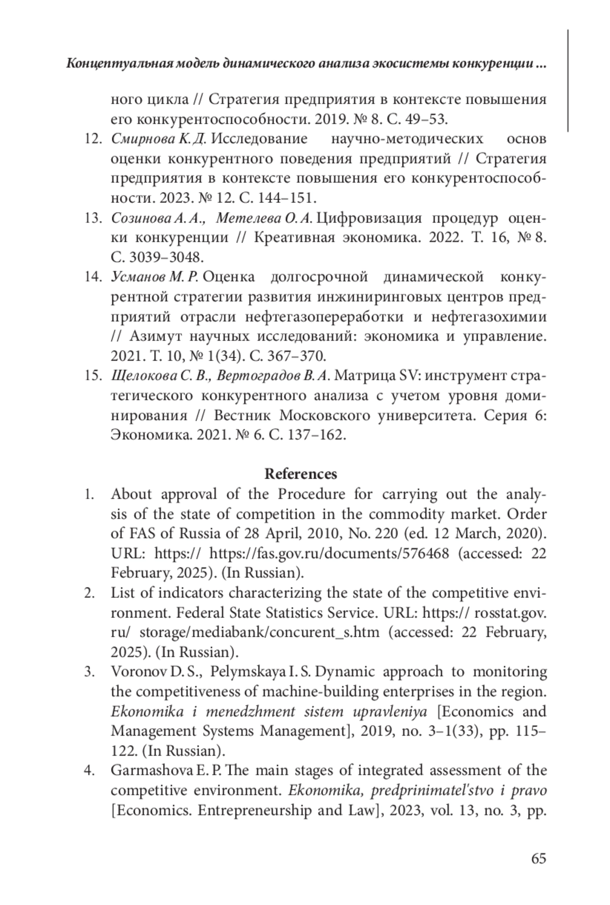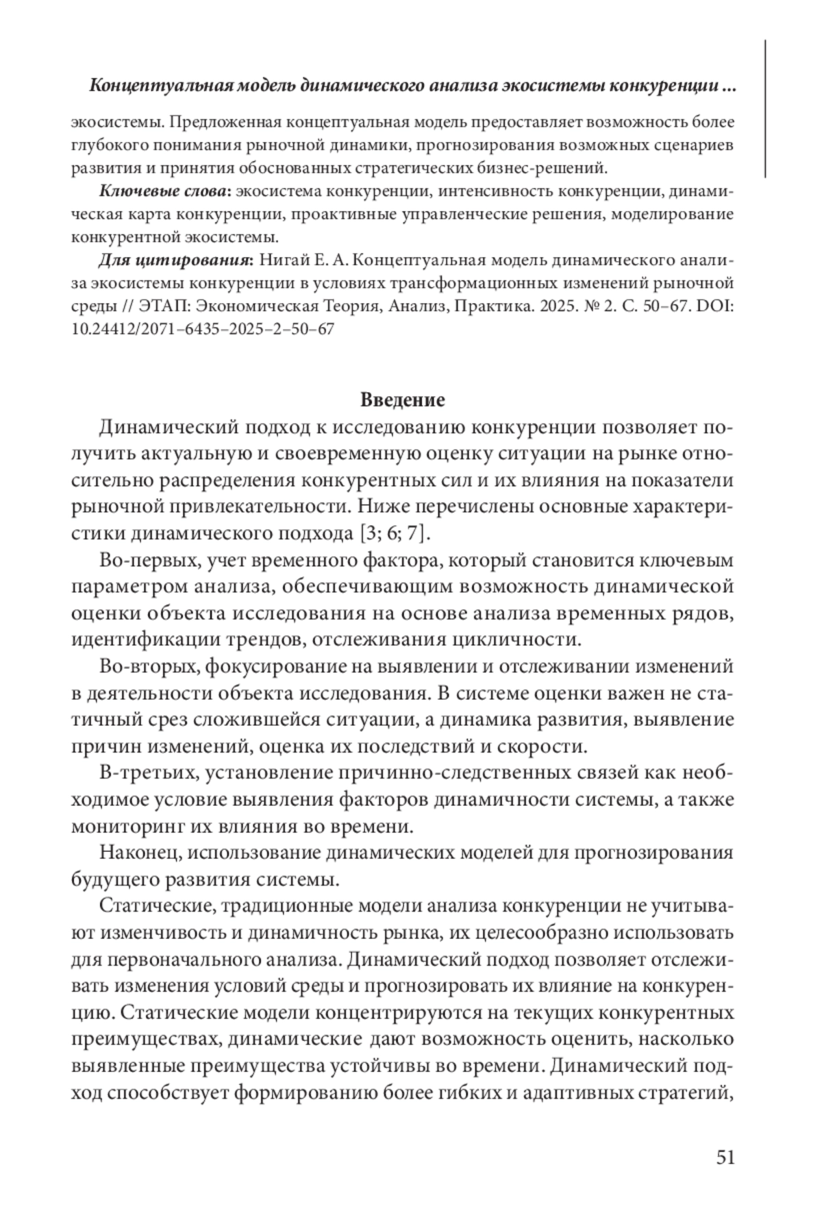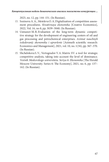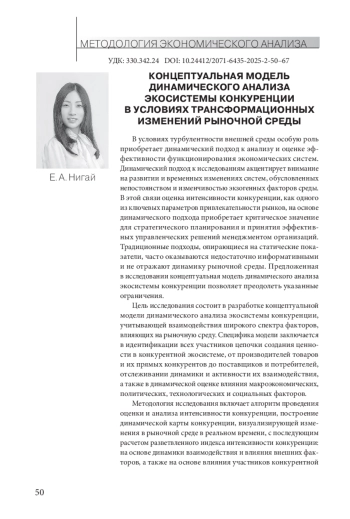В условиях турбулентности внешней среды особую роль приобретает динамический подход к анализу и оценке эффективности функционирования экономических систем. Динамический подход к исследованиям акцентирует внимание на развитии и временных изменениях систем, обусловленных непостоянством и изменчивостью экзогенных факторов среды. В этой связи оценка интенсивности конкуренции, как одного из ключевых параметров привлекательности рынков, на основе динамического подхода приобретает критическое значение для стратегического планирования и принятия эффективных управленческих решений менеджментом организаций. Традиционные подходы, опирающиеся на статические показатели, часто оказываются недостаточно информативными и не отражают динамику рыночной среды. Предложенная в исследовании концептуальная модель динамического анализа экосистемы конкуренции позволяет преодолеть указанные ограничения.
