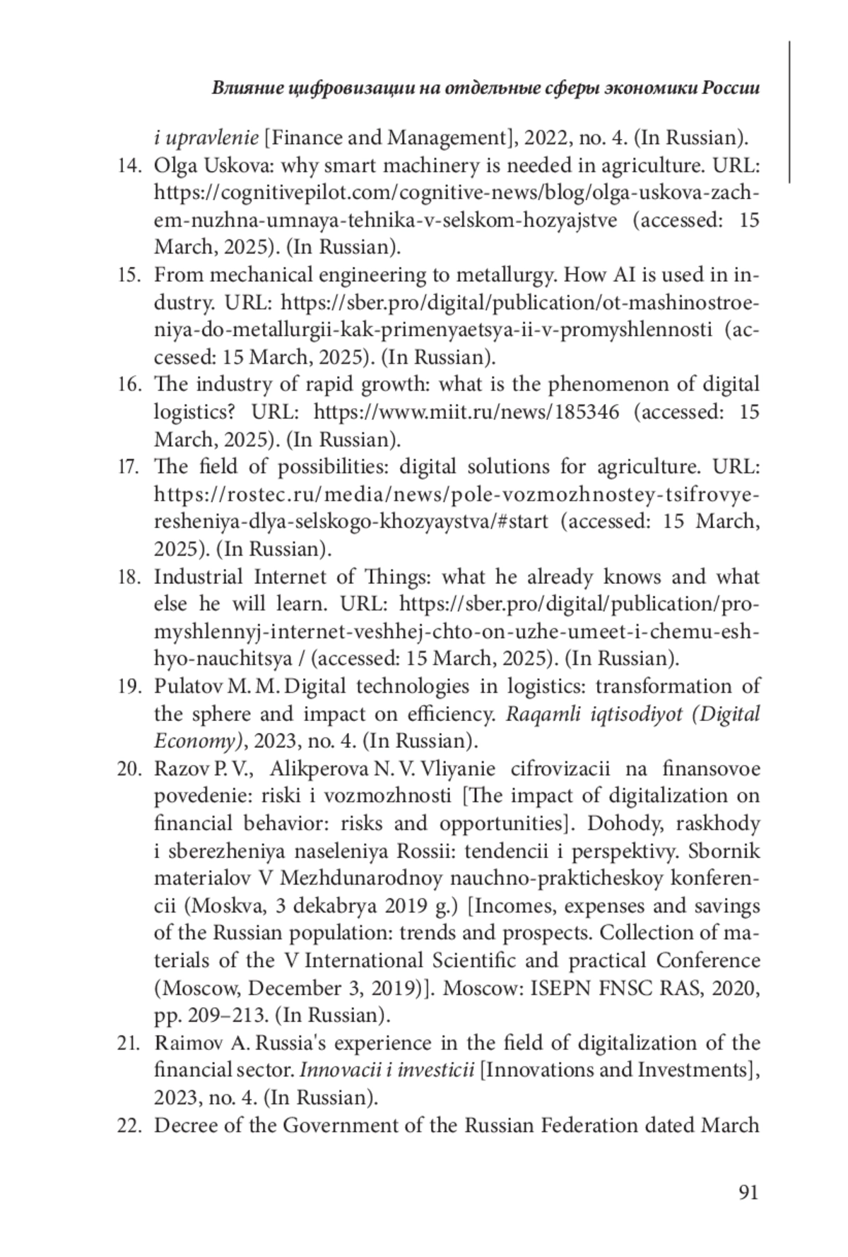 21. 	Раимов А. Опыт России в области цифровизации финансового сектора // Инновации и инвестиции. 2023. № 4.