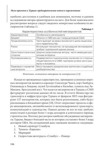 В связи со 100-летнем юбилеем Турецкой Республики, празднование которого проходило в Турции в 2023 году, в стране интенсифицировалась дискуссия о мегапроектах. К этой дате правительство Республики запланировало реализацию более тридцати мегапроектов, которые были призваны значительно улучшить экономическое положение страны. Многие из них действительно были реализованы. Однако встает вопрос о том, какой вклад мегапроекты внесли в экономику Турции и насколько им удалось повысить ее конкурентоспособность. В настоящее время интерес к мегапроектам в мире значительно увеличивается, в связи с чем в научном сообществе появляется все больше исследований, посвященных данному феномену. На примере Турции можно проследить, как мегапроекты могут повлиять на экономическое положение страны и оценить перспективы их дальнейшего внедрения.
