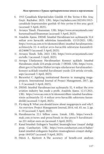 4. 	Демирколлу М. Турецкие мегапроекты // Sanal Çantiye. 2015. URL: https://www.sanalsantiyet.com/turkiyenin-mega-projeleri/(дата обращения: 5 апреля 2025 года).
