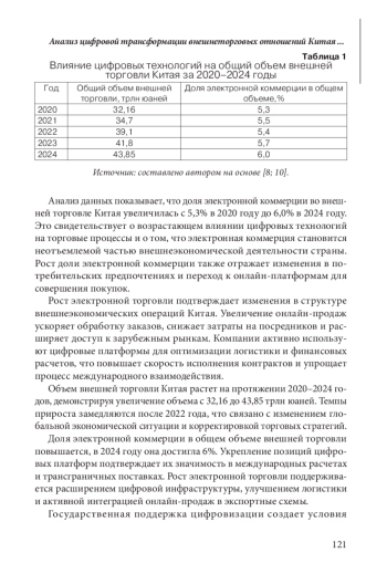 5. 	Цзи Т. Влияние цифровых технологий на развитие внешней торговли / Индустрия 5.0, цифровая экономика и интеллектуальные экосистемы (ЭКОПРОМ-2021), 2021. С. 692-695.