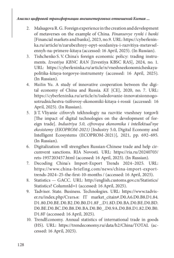 6. 	Цифровизация укрепит российско-китайскую торговлю и поможет обойти санкции // РИА Новости. URL: https://ria.ru/20240703/rets-1957203457.html (дата обращения: 16 апреля 2025 года).