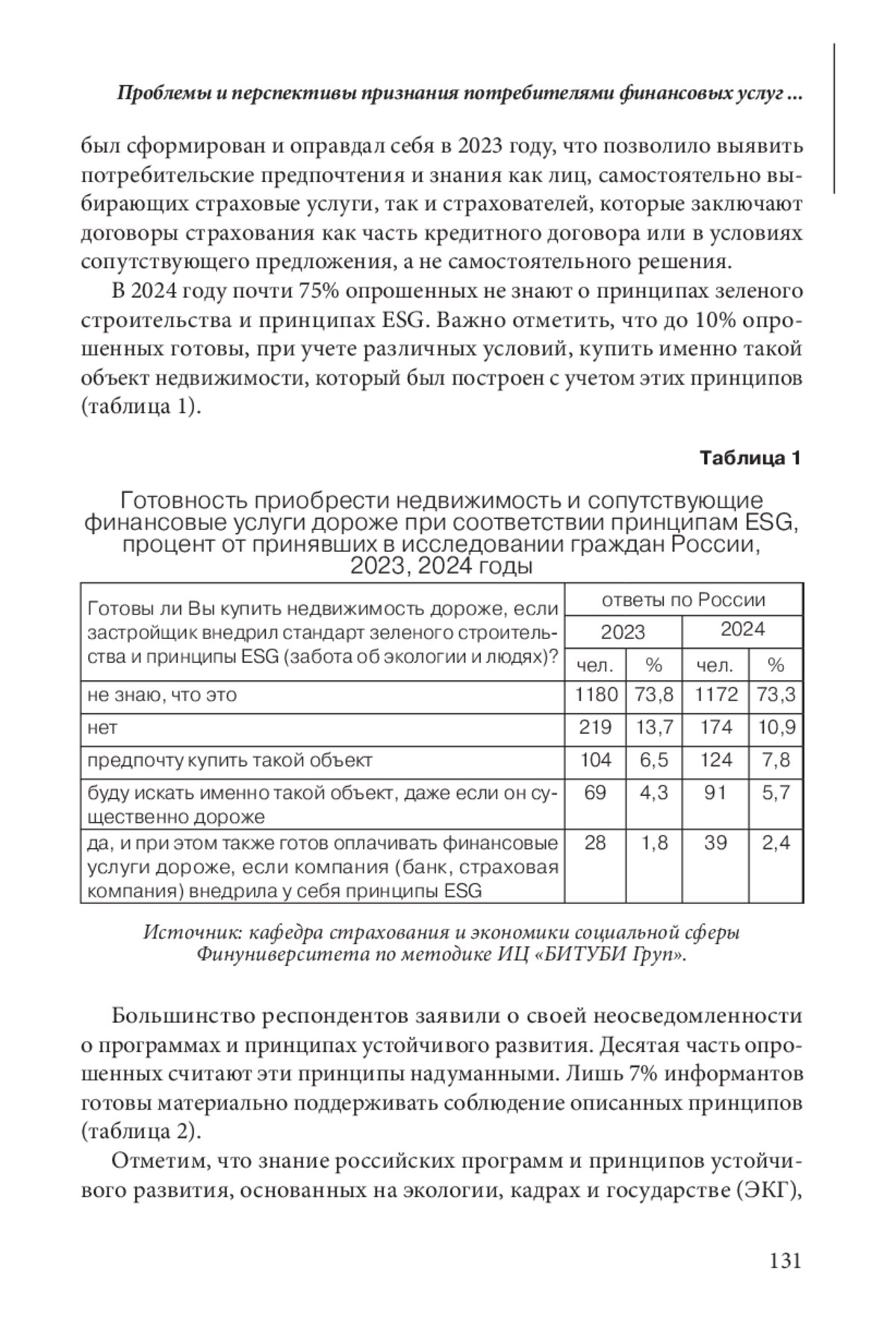 Внедрение принципов устойчивого развития на российском страховом рынке сдерживается отсутствием внятного запроса и поддержки общества в условиях низкого платежеспособного спроса на страховые услуги, что снижает эффективность принятых мер стимулирования этого процесса. На основе социологических опросов российских граждан 2023 и 2024 годов выделяются основные проблемы признания принципов ESG и ЭКГ (экология, кадры, государство) российскими страхователями и определяются перспективы дальнейшего внедрения.