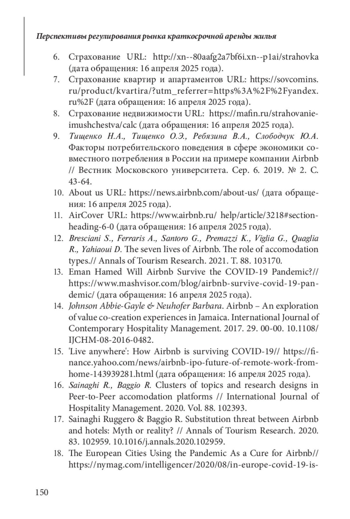13. Eman Hamed Will Airbnb Survive the COVID-19 Pandemic?// https://www.mashvisor.com/blog/airbnb-survive-covid-19-pan-demic/(дата обращения: 16 апреля 2025 года).