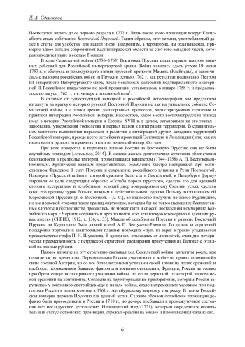 18. 	Анисимов М.Ю. Восточная Пруссия в российских планах в годы Семилетней войны (1756-1763 гг.) // Изв. Самар. науч. центра Рос. акад. наук. 2014. Т. 16, № 3. С. 150-161. EDN: SQJAOH