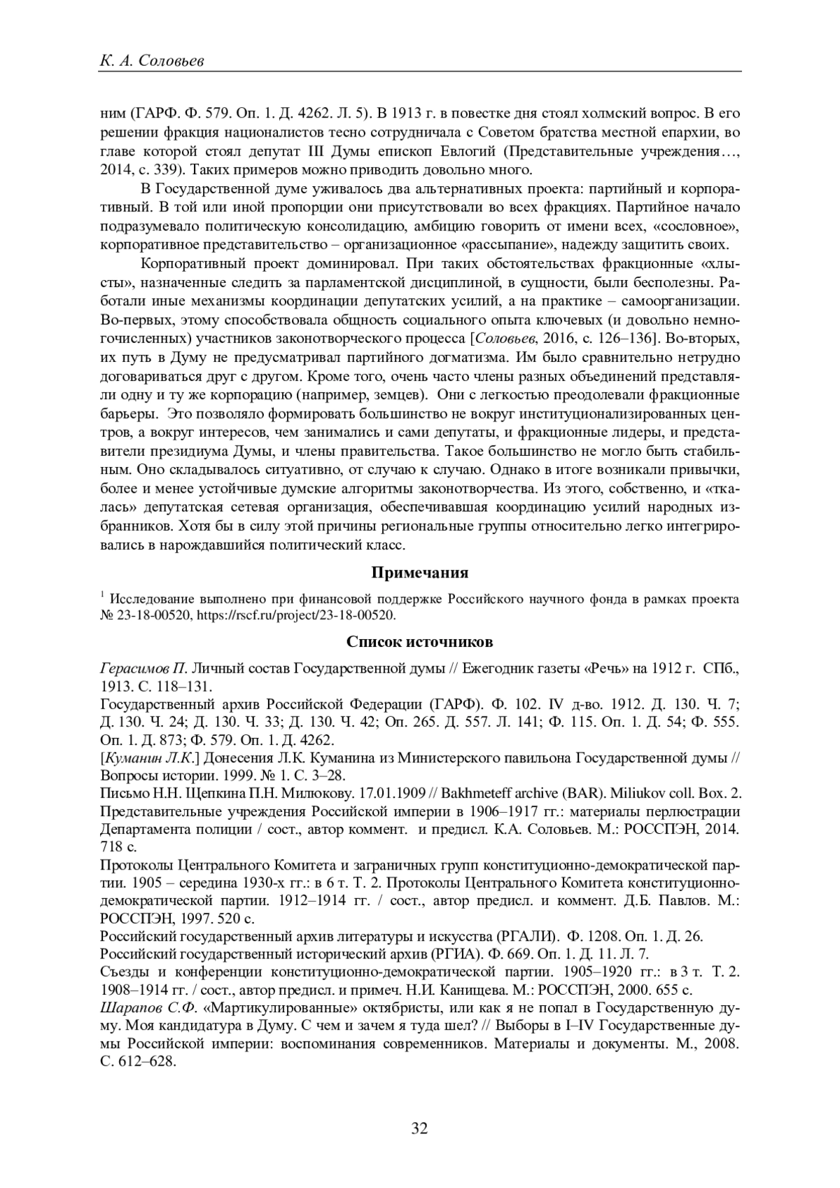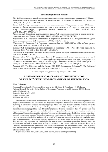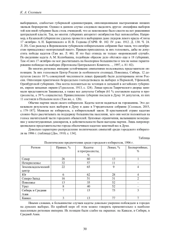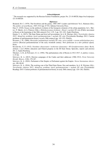 16. 	Соловьев К.А. Избирательные кампании кадетов и их адресат (1906-1912) // Вестник Пермского университета. История. 2015. № 3 (30). С. 179-187. EDN: UMZEUX