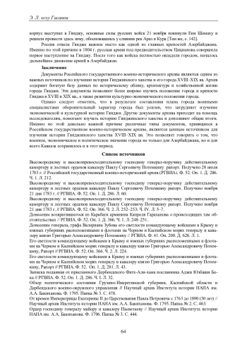 10. От времен Императрицы Екатерины II до Царствования Павла Петровича с 1763 до 1890 (30 лет) // Научный архив Института истории НАНА им. А.А. Бакиханова. Ф. 1795. Папка № 2. С. 463.
