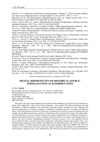 26. 	Fickers A., Tatarinov J. Digital History and Hermeneutics: Between Theory and Practice. Berlin, Boston: De Gruyter Oldenbourg, 2022. 312 p. DOI: 10.1515/9783110723991