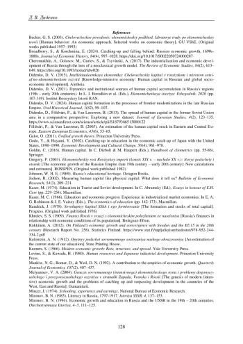 19. Диденко Д.В. Динамика и институциональные источники накопления человеческого капитала в регионах России (вторая половина XIX в. - начало XX в.) // Экономическая история: ежегодник. М.: Институт российской истории РАН, 2021. С. 107-149. EDN: NFHGPT