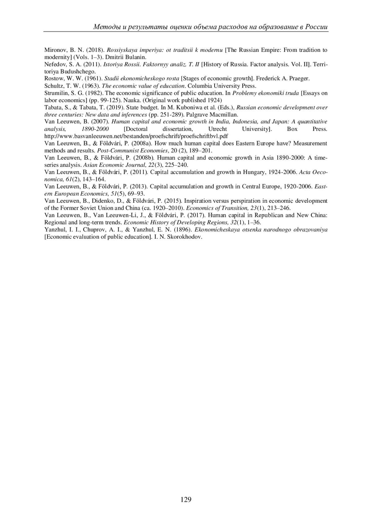 55. Van Leeuwen B., Földvári P. How Much Human Capital Does Eastern Europe Have? Measurement Methods and Results // Post-Communist Economies. 2008а. Vol. 20, no. 2. P. 189-201.