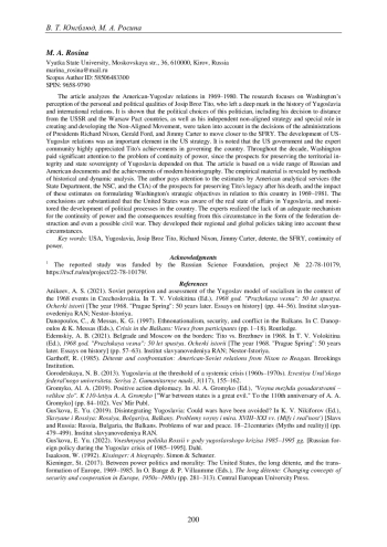 12. 	Weekly Summary Special Report the Struggle for a Yugoslav National Identity, 10 March 1972 // CIA. Available at: https://www.cia.gov/readingroom/docs/CIA-RDP85T00875R001500040010-7.pdf (accessed: 19.05.2023).