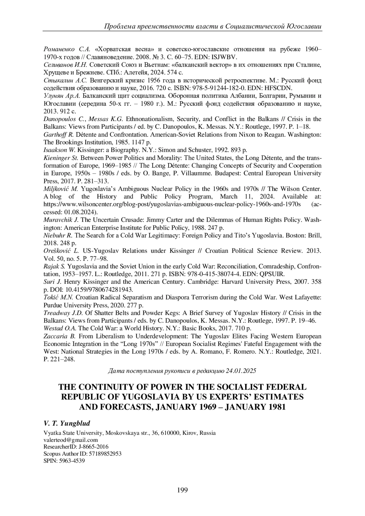 39. 	Orešković L. US-Yugoslav Relations under Kissinger // Croatian Political Science Review. 2013. Vol. 50, no. 5. P. 77-98.