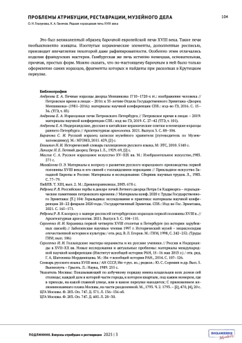 12. Архитектурная археология. 2021. Выпуск 3. С. 104-115.