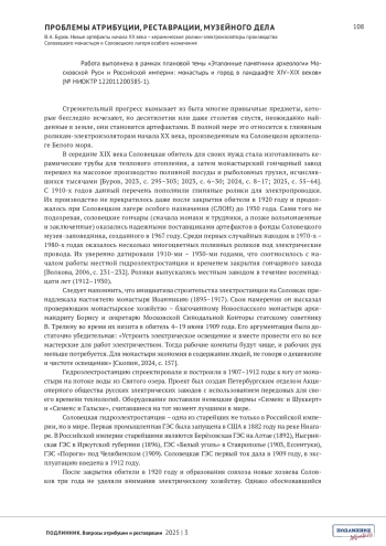 6. Ворожейкина М. Е. Археологические исследования монастырской ГЭС // Соловецкий сборник. Выпуск 10. Архангельск, 2014. С. 48-61.