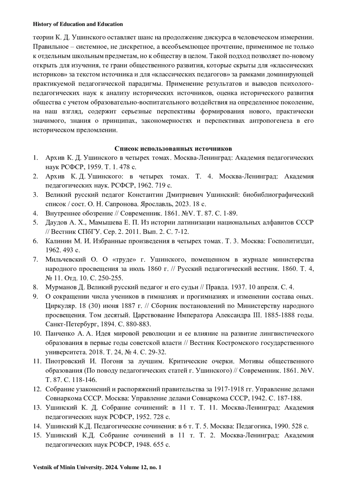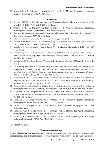 13. Ушинский К. Д. Собрание сочинений: в 11 т. Т. 11. Москва-Ленинград: Академия педагогических наук РСФСР, 1952. 728 с.