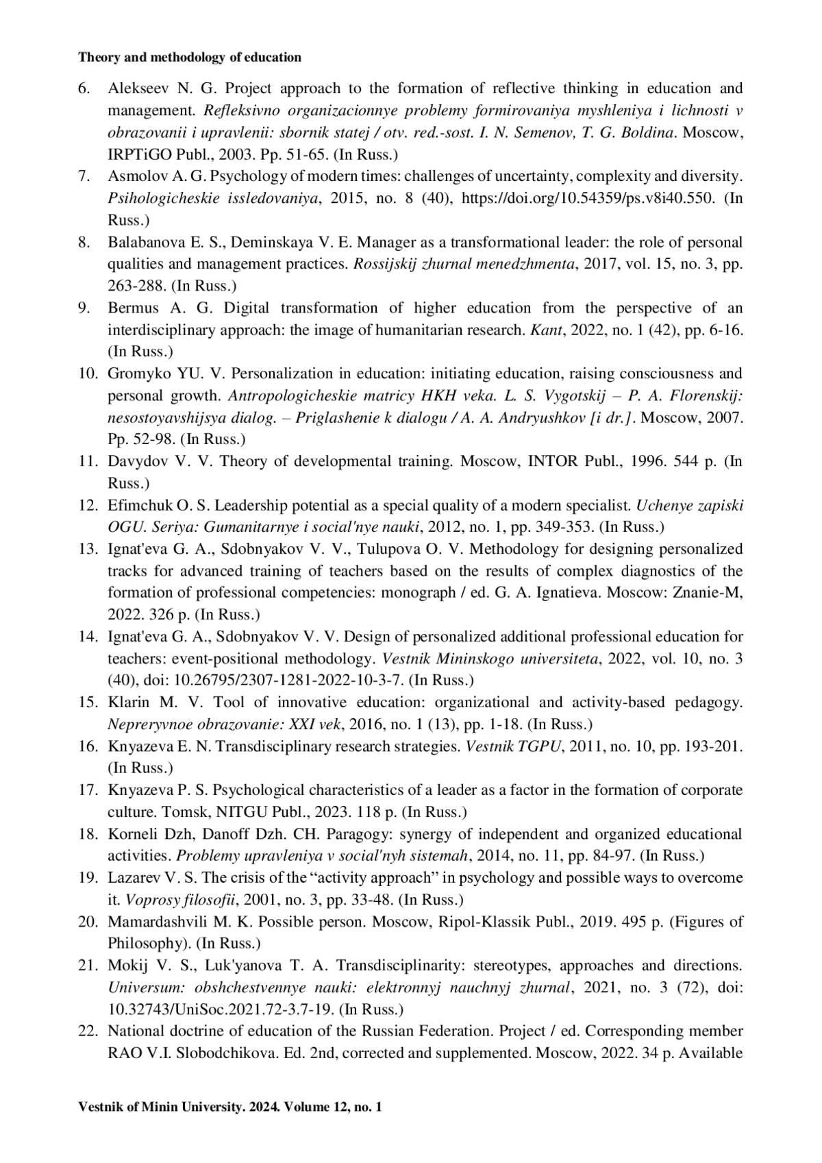 9. Бермус А. Г. Цифровая трансформация высшего образования с позиций междисциплинарного подхода: образ гуманитарных исследований // Кант. 2022. № 1 (42). С. 6-16.