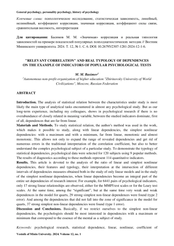 29. Basimov M. M. “Convenient” correlational errors in modern psychological science (mathematical aspect). The European Proceedings of Social & Behavioural Sciences. Proceedings of the International Conference on Research Paradigms Transformation in Social Sciences (RPTSS 2018), 2018, vol. L, pp. 137-146, https://doi.org/10.15405/epsbs(2357-1330).2018.12.1.