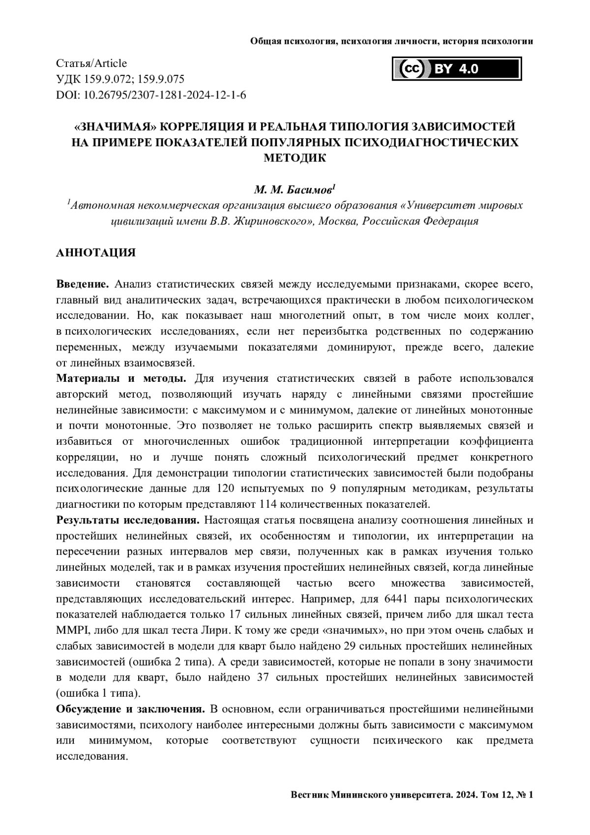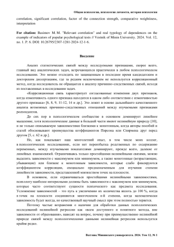 3. Basimov M. M. Typical models of psychological processes and their erroneous interpretations through “significant” correlations. Uchenye zapiski Rossijskogo gosudarstvennogo social’nogo universiteta, 2017, vol. 16, no. 3 (142), pp. 6-18. (In Russ.)