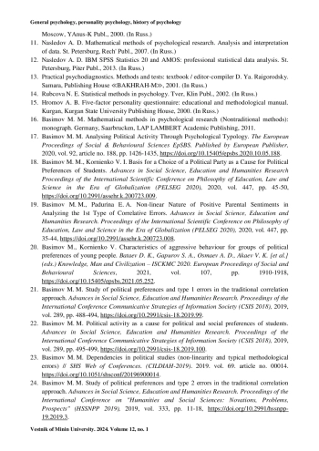 17. Basimov M. M. Analysing Political Activity Through Psychological Typology. The European Proceedings of Social & Behavioural Sciences EpSBS. Published by European Publisher, 2020, vol. 92, article no. 188, pp. 1426-1435, https://doi.org/10.15405/epsbs.2020.10.05.188.