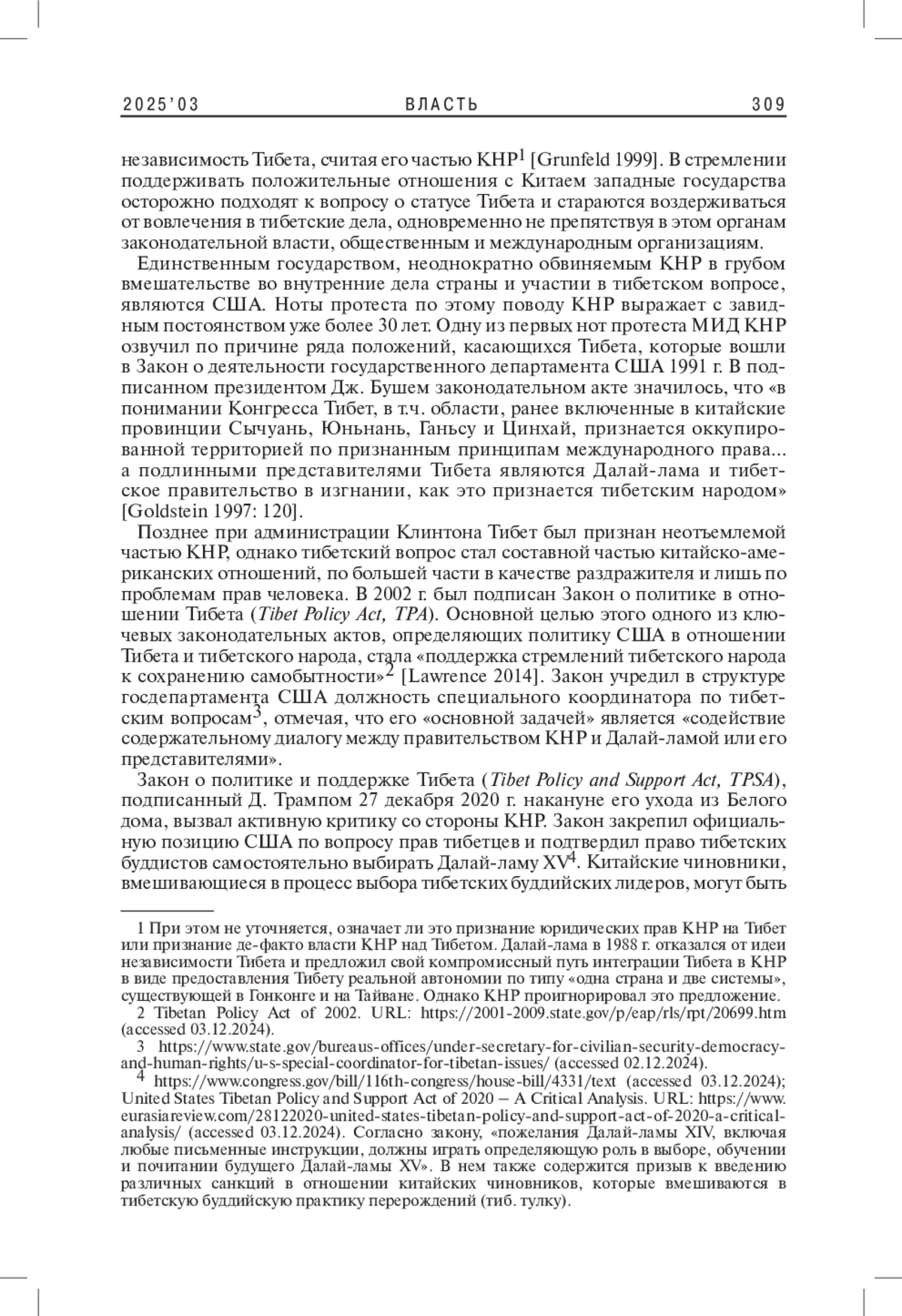 8. Lawrence S.V. 2014. The Tibetan Policy Act of 2002: Background and Implementation. Congressional Research Service. Washington. 43 p.