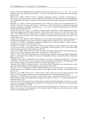 59. Федорова Н.В., Зыков А.П., Морозов В.М., Терехова Л.М. Сургутское Приобье в эпоху средневековья // Вопросы археологии Урала. Екатеринбург: Изд-во Урал. гос. ун-та, 1991. С. 126-145. EDN: VDTRJP