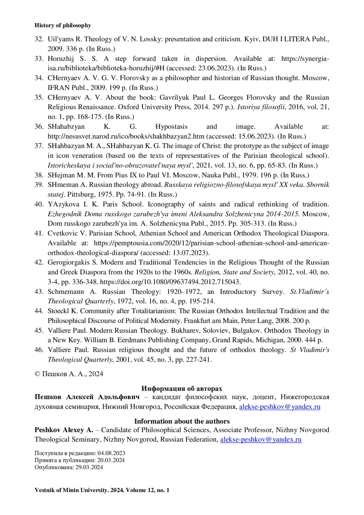 41. Cvetkovic V. Parisian School, Athenian School and American Orthodox Theological Diaspora. Available at: https://pemptousia.com/2020/12/parisian-school-athenian-school-and-american-orthodox-theological-diaspora (accessed: 13.07.2023).