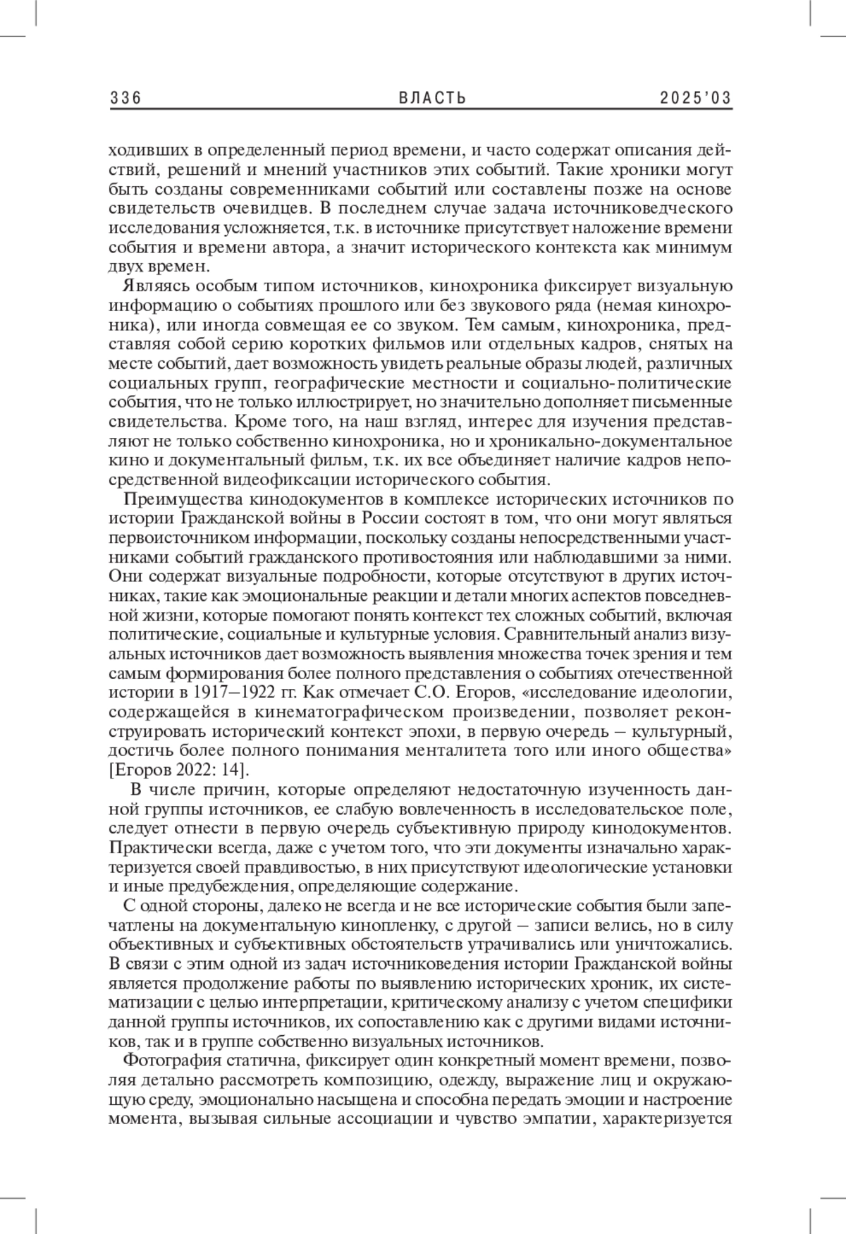 2. 	Егоров С.О. 2022. Кино, история, идеология: возможные подходы к интерпретации кинотекста. - Исторический курьер. № 5(25). С. 11-20. EDN: OZHERK
