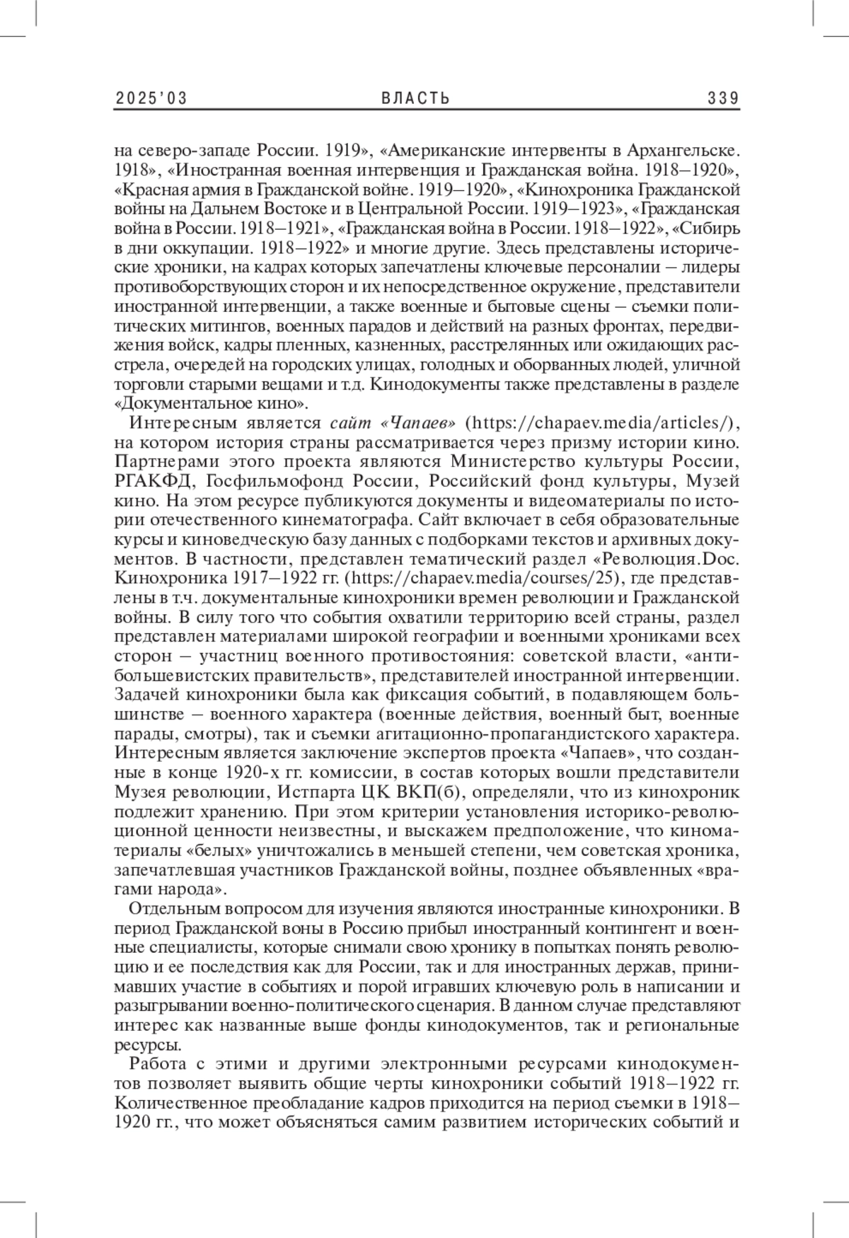 10. 	Юмашева Ю.Ю. 2019б. “Важнейшее из искусств” в сети Интернет (оцифрованные коллекции кинохроники и документального кино, представленные онлайн. - Историческая информатика. № 2. С. 19-105.