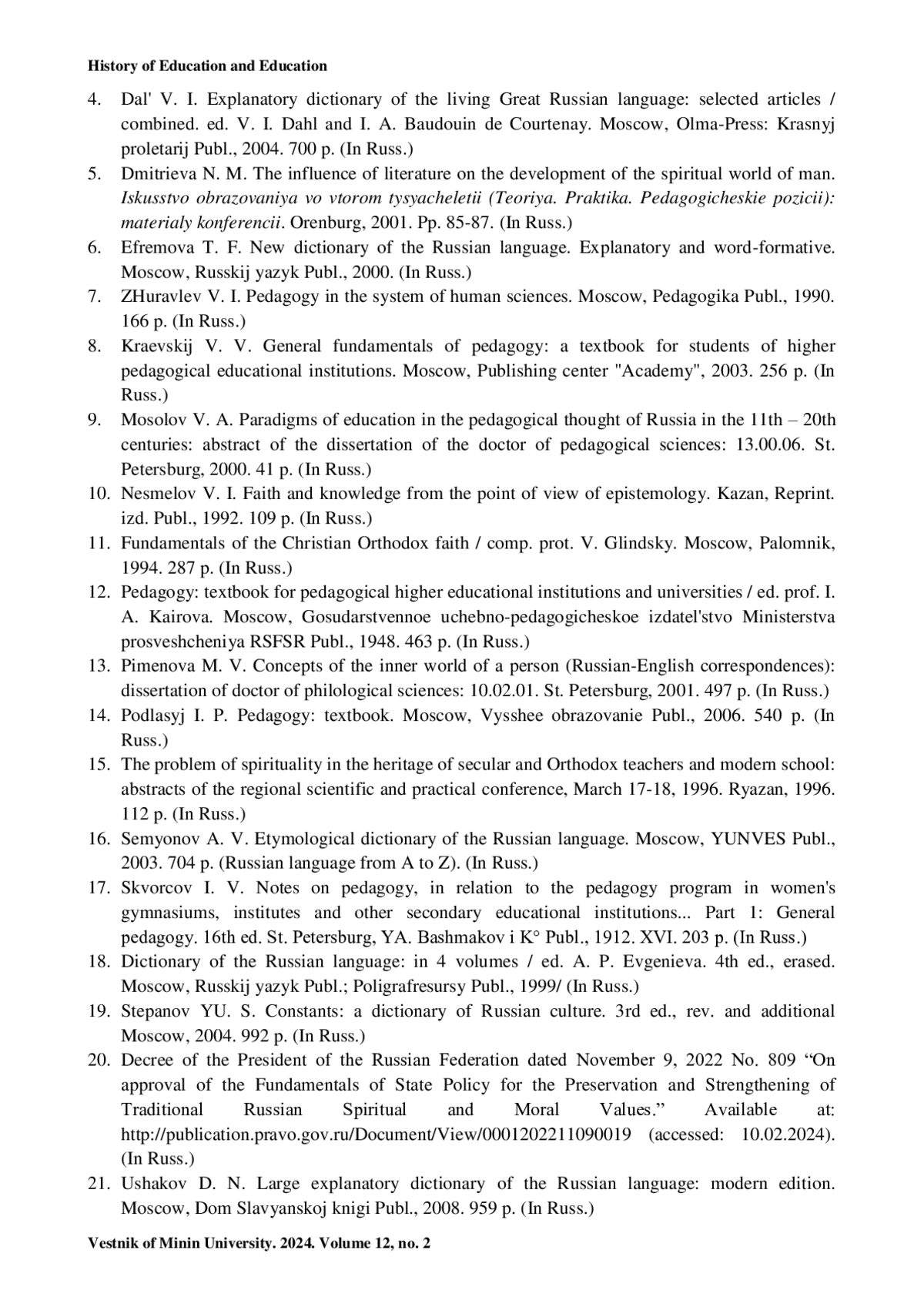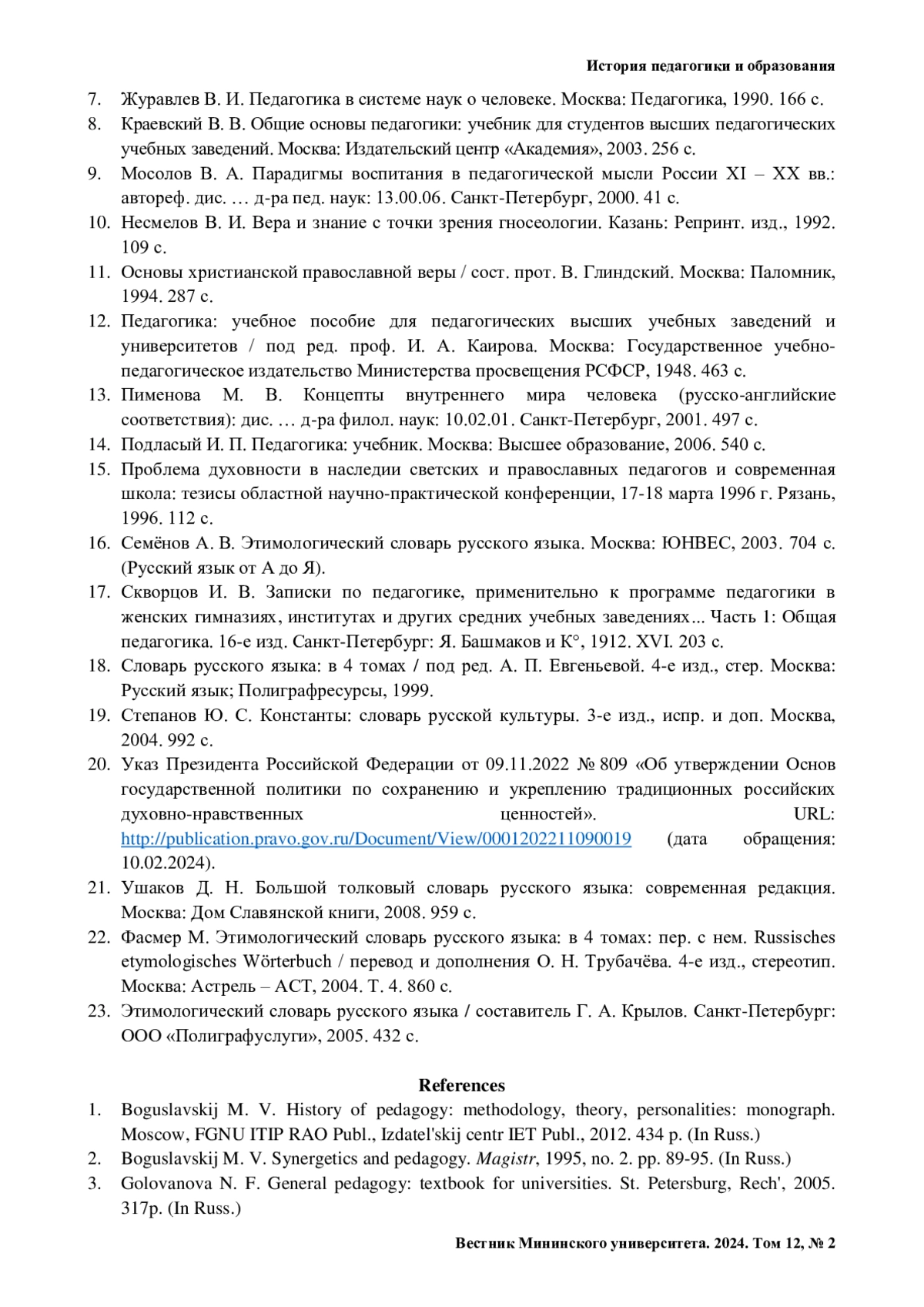 9. Мосолов В. А. Парадигмы воспитания в педагогической мысли России XI - XX вв.: автореф. дис. … д-ра пед. наук: 13.00.06. Санкт-Петербург, 2000. 41 с.