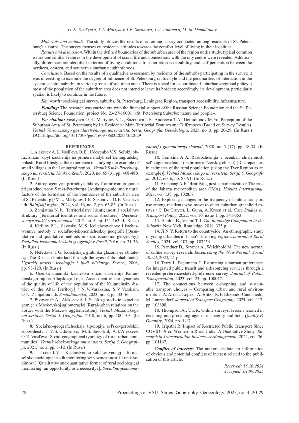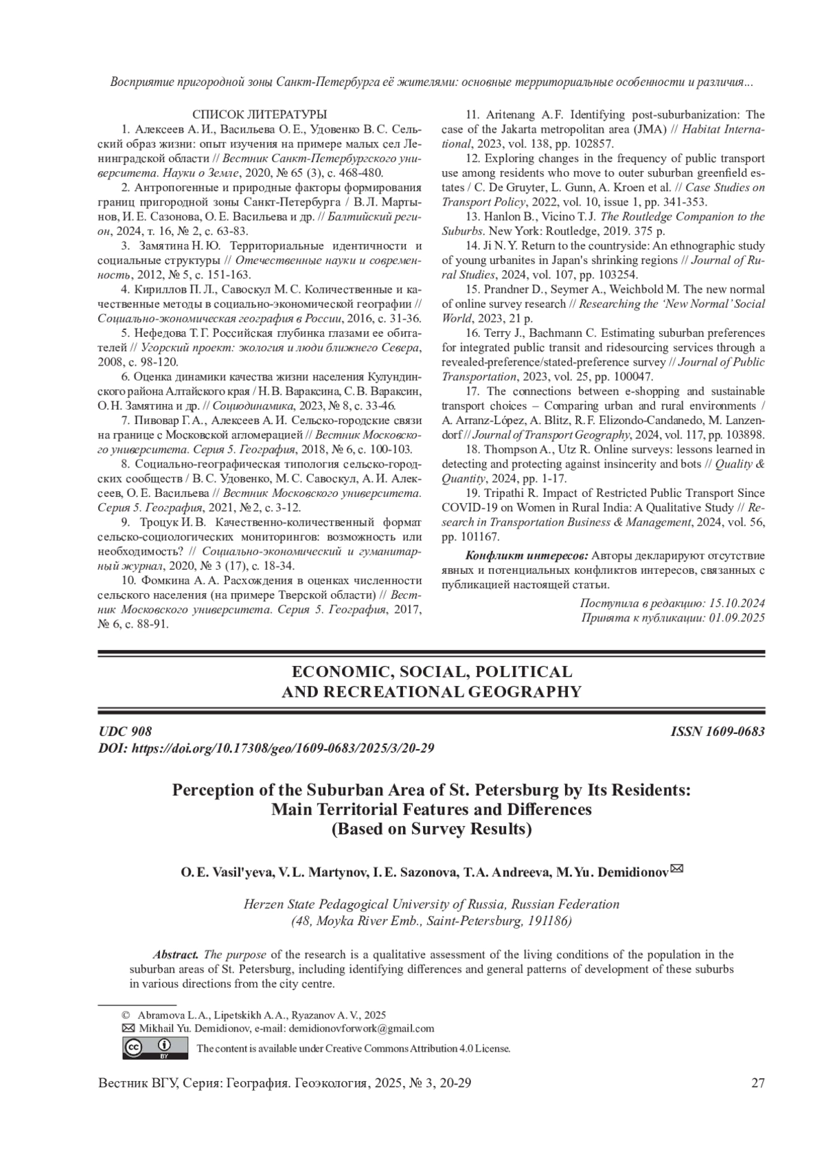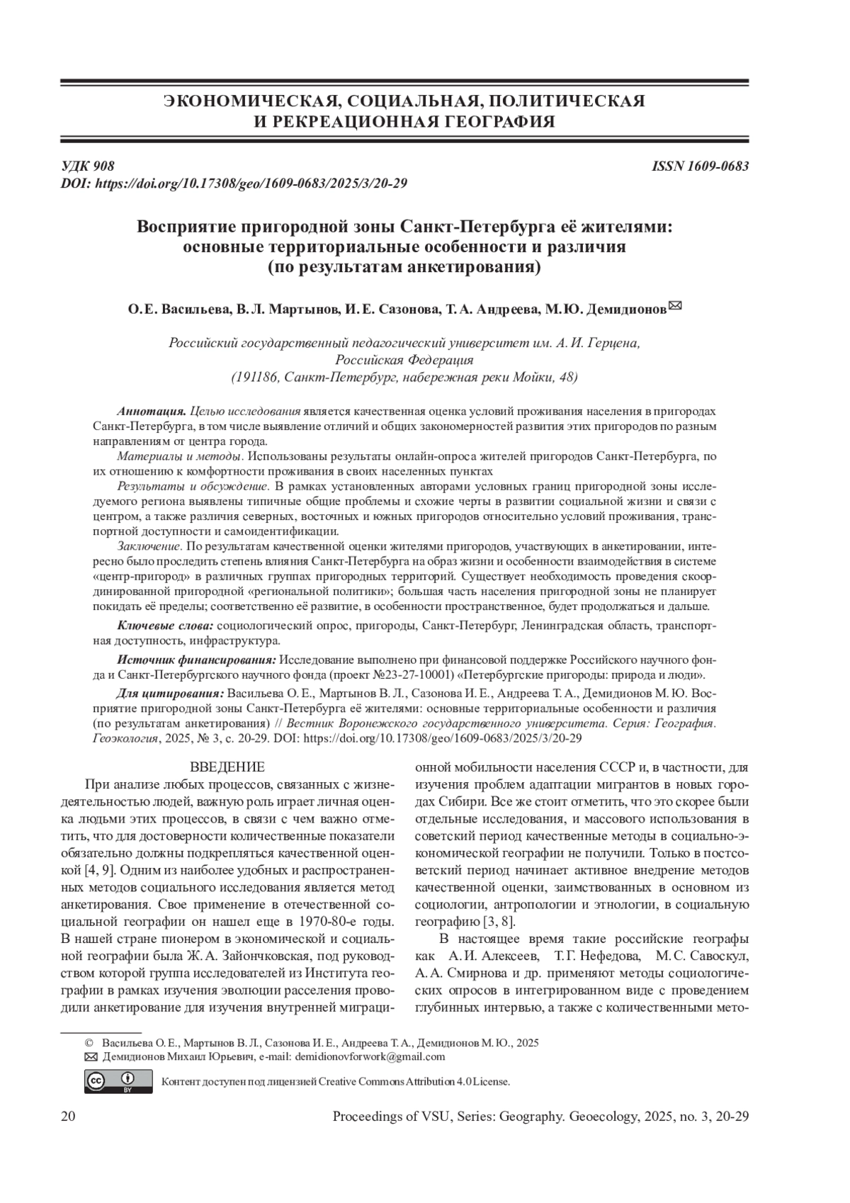 2. 	Антропогенные и природные факторы формирования границ пригородной зоны Санкт-Петербурга / В. Л. Мартынов, И. Е. Сазонова, О. Е. Васильева и др. II Балтийский регион, 2024, т. 16, №2, с. 63-83.