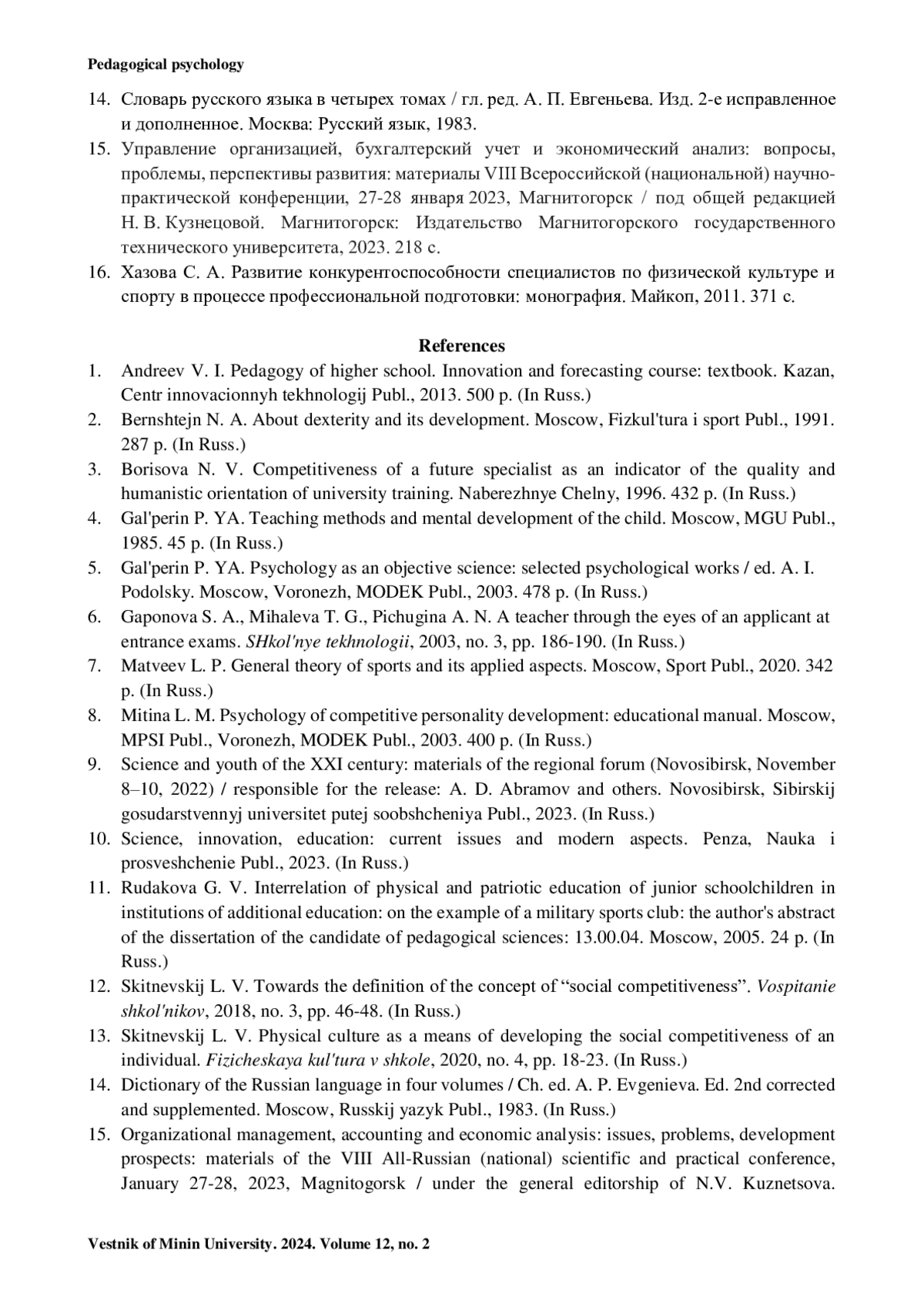 12. Скитневский Л. В. К определению понятия «социальная конкурентоспособность» // Воспитание школьников. 2018. № 3. С. 46-48.