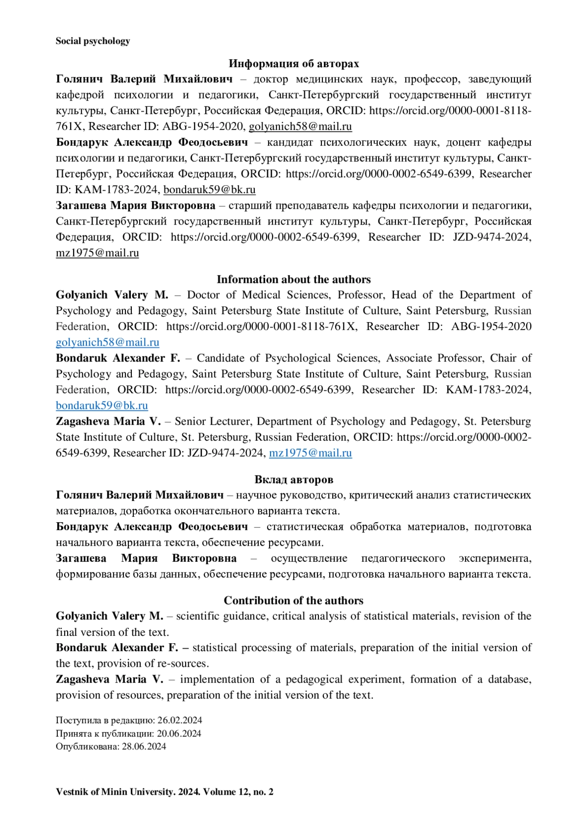12. Коротаева А. И., Кузьмин М. Ю. Особенности социально-психологической адаптации школьников с разной гендерной идентичностью // Педагогический имидж. 2020. № 4 (49). С. 729-742.