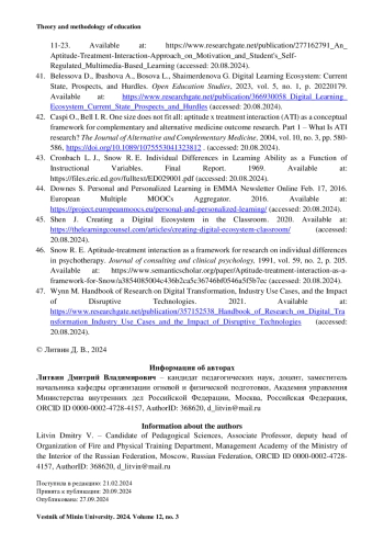 43. Cronbach L. J., Snow R. E. Individual Differences in Learning Ability as a Function of Instructional Variables. Final Report. 1969. Available at: https://files.eric.ed.gov/fulltext/ED029001.pdf (accessed: 20. 08. 2024).