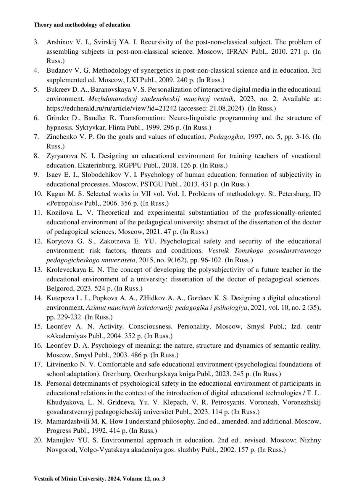 34. Шакирова Е. В., Кузьмин С. В. Психолого-педагогические основы проектирования образовательной среды. Иваново: Ивановский гос. ун-т, 2023. 150 с.