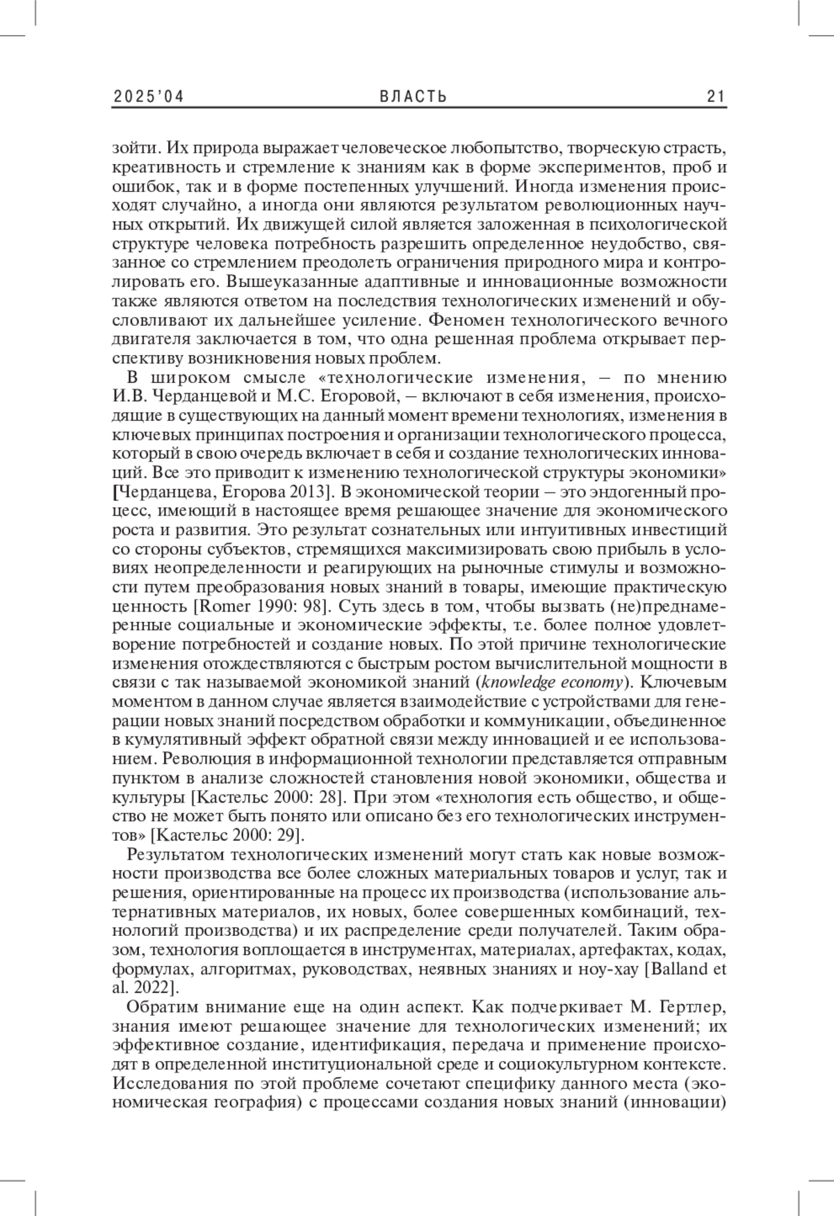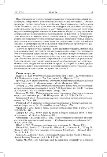9. 	Черданцева И.В., Егорова М.С. 2013. Технологические изменения в контексте развития экономической теории. - Фундаментальные исследования. № 11. Ч. 8. С. 1684-1688. EDN: RVFFDD