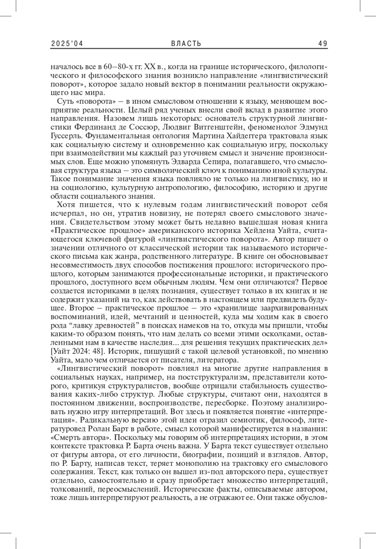 7. 	Уайт Х. 2024. Практическое прошлое (пер. с англ.). М.: Новое литературное обозрение. 192 с.