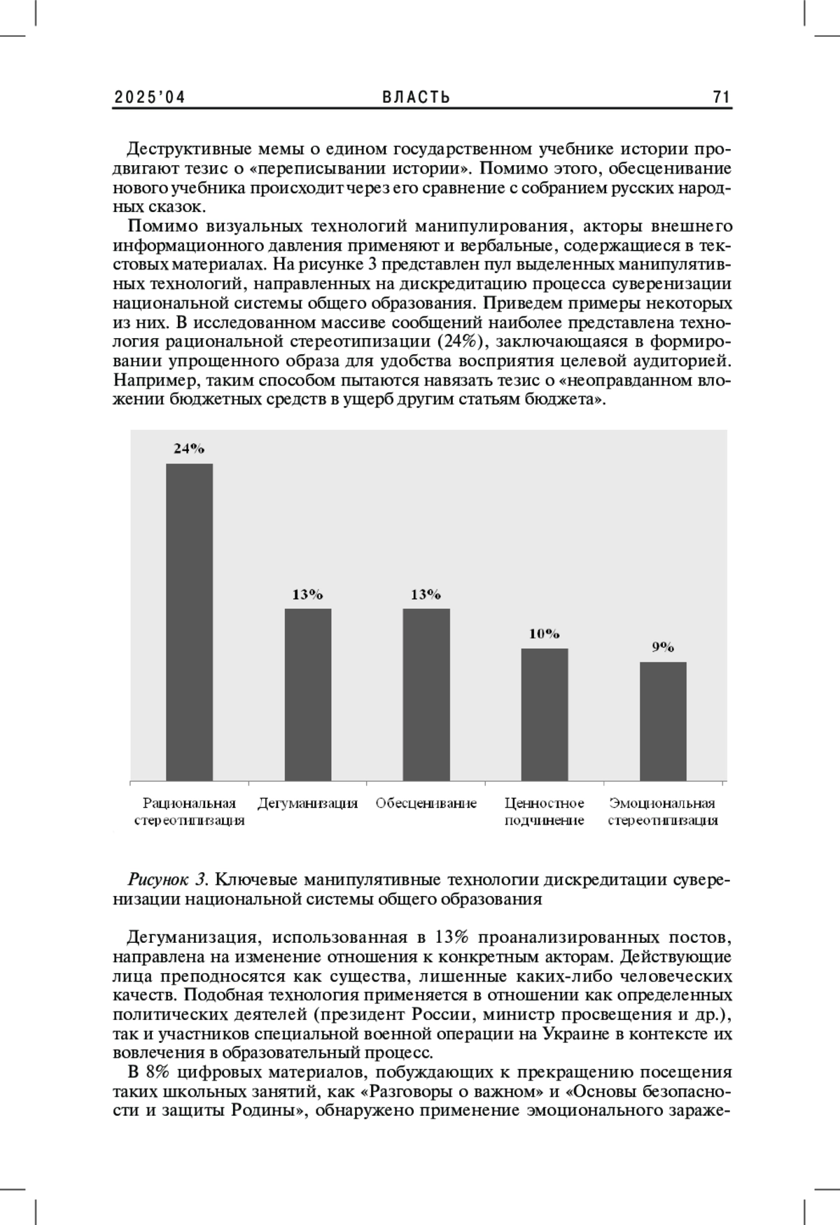 С 2022 г. в России реализуется комплекс мер, направленных на укрепление суверенности национальной системы общего образования. Однако процесс суверенизации образовательной системы стал мишенью внешнего деструктивного информационно-психологического воздействия. В статье авторы выделяют применяемые технологии внешнего информационного давления на суверенизацию системы общего образования в России и отмечают, что внешние сетевые акторы используют спектр манипулятивных технологий, которые подобраны в зависимости от целевой группы информационного воздействия. В статье отдельно рассматриваются визуальные технологии манипулятивного характера, такие как мемы, направленные на дискредитацию инструментов формирования суверенной системы образования.