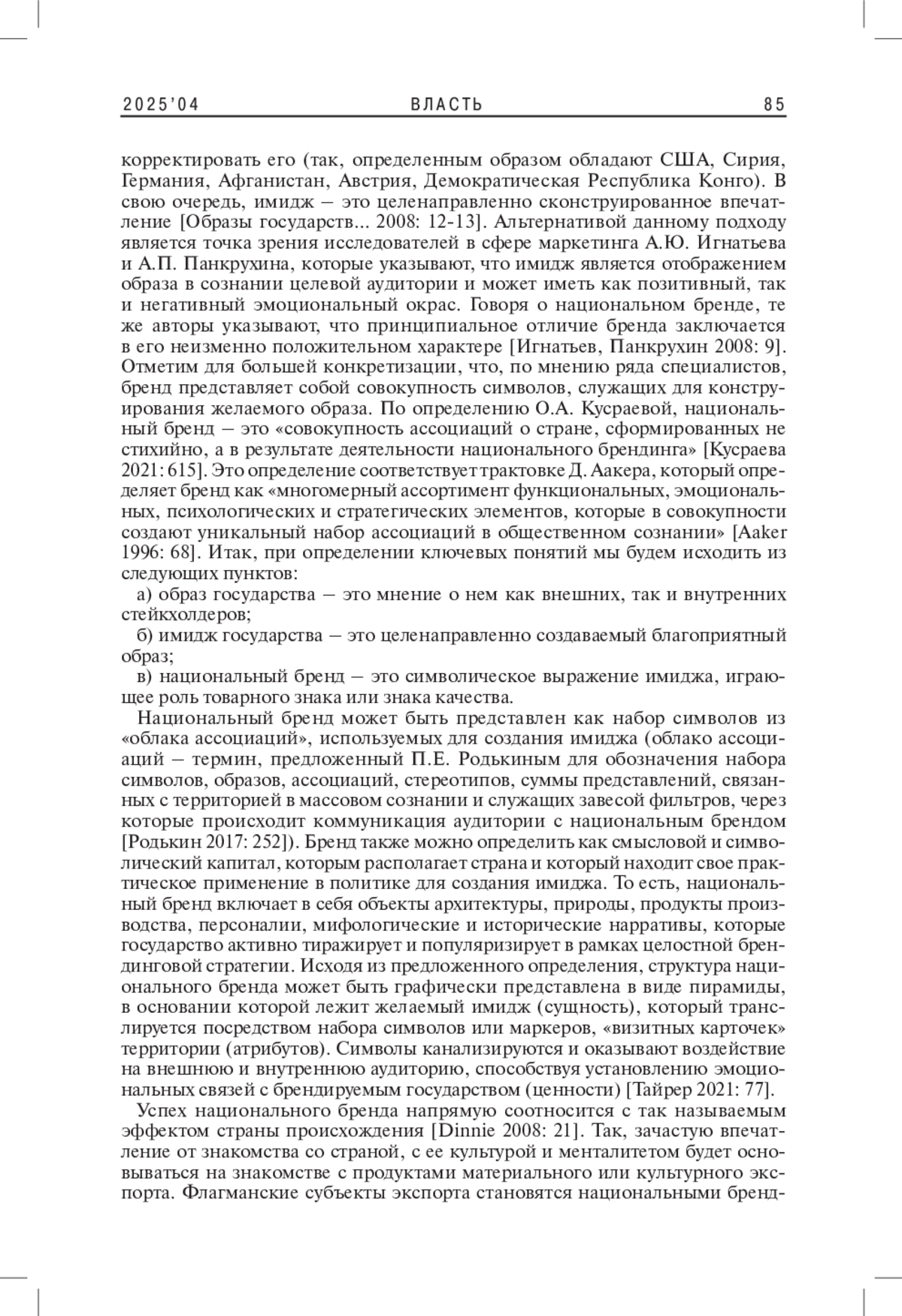 5. 	Тайрер С.Д. 2021. Национальный брендинг как элемент конструирования позитивного имиджа государства. - Гуманитарный акцент. № 2. С. 75-80. EDN: PIKDCX