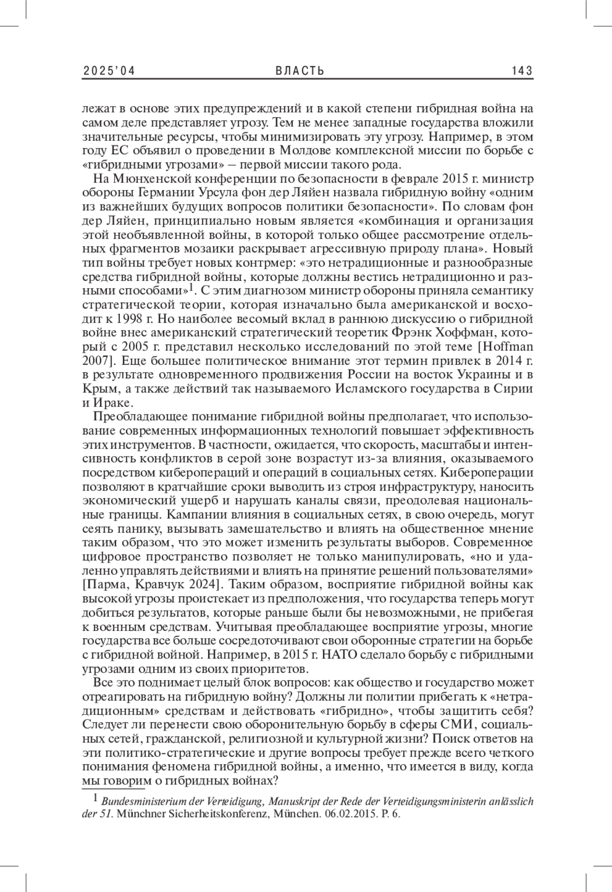 5. Hoffman F.G. 2007. Conflict in the 21st Century: The Rise of Hybrid Wars. Potomac Institute for Policy Studies. 72 p.