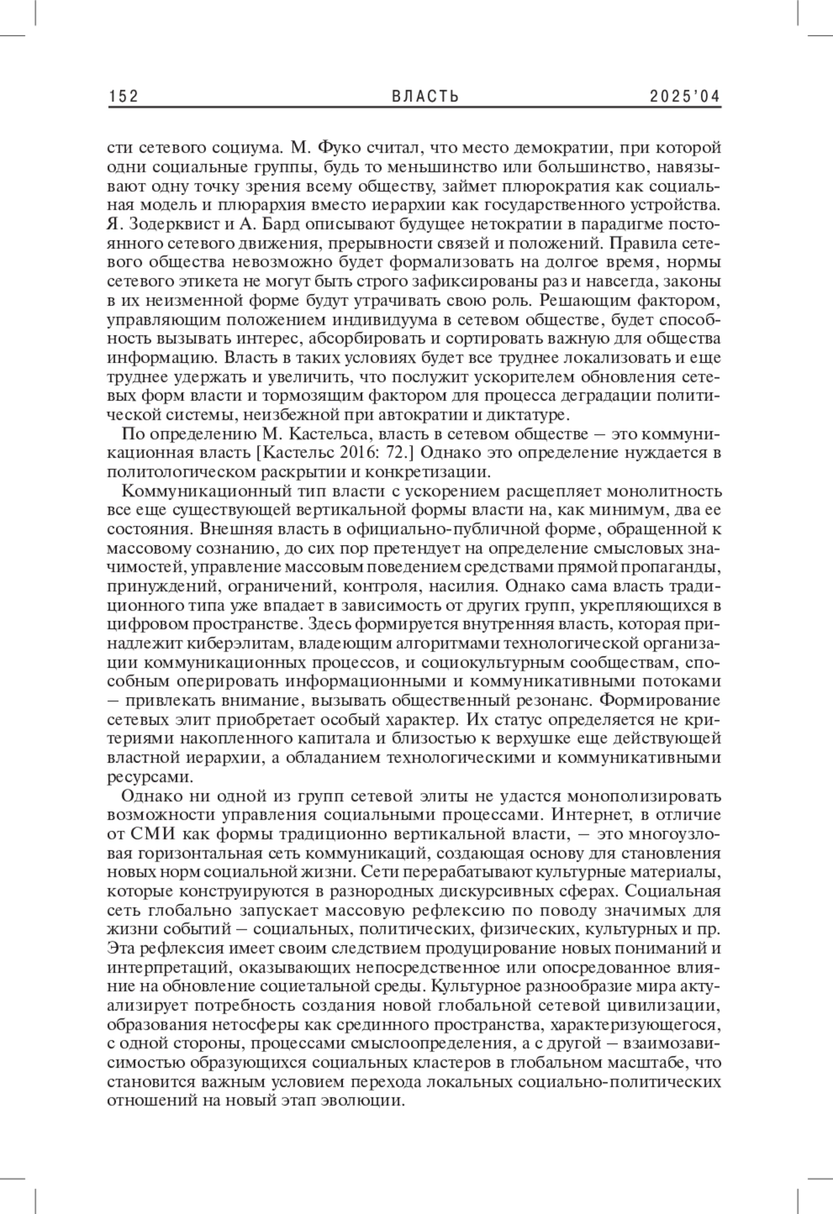5. 	Кастельс М. 2016. Власть коммуникации: учебное пособие (пер. с англ. Н.М. Тылевич; под науч. ред. А.И. Черных). М.: ИД ВШЭ. 564 с.
