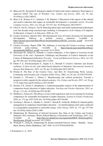 28. Dreesmann M., Grüner H., Schmidt A. Creative Industries: A New Sphere of Activities for the University of the Arts? Aspirations, Challenges and Restraints of Creative Industries in the Context of Management Education // Procedia - Social and Behavioral Sciences. 2014. Vol. 110. Pp. 587-594. https://doi.org/10.1016/j.sbspro.2013.12.903.