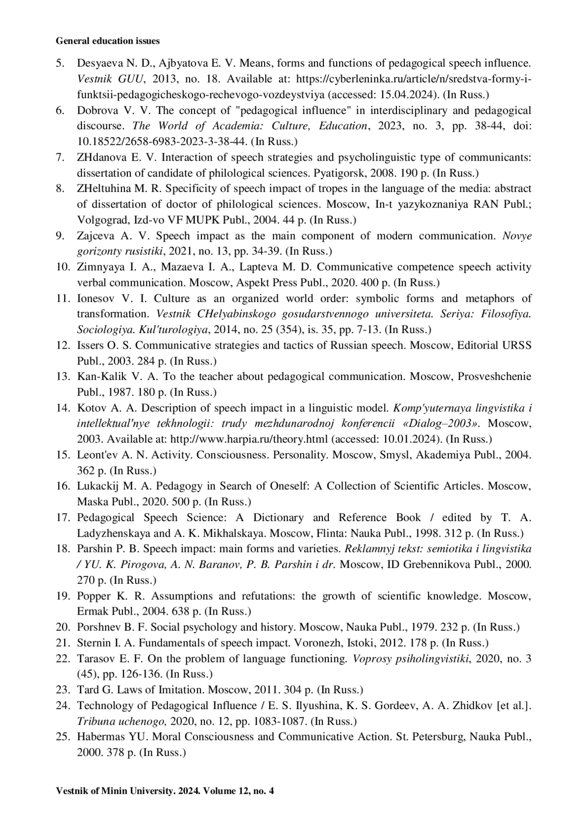 5. Десяева Н. Д., Айбятова Е. В. Средства, формы и функции педагогического речевого воздействия // Вестник ГУУ. 2013. № 18. URL: https://cyberleninka.ru/article/n/sredstvaformy-i-funktsii-pedagogicheskogo-rechevogo-vozdeystviya (дата обращения: 15.04.2024).
