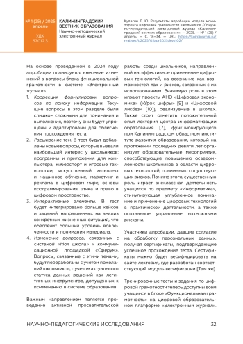 6. 	Кулагин, Д. Ю. Внедрение ФГИС “Моя школа” в регионе: опыт, проблемы, решения [Электронный ресурс] / Д. Ю. Кулагин, Н. Н. Пустоваченко // Научно-методический электронный журнал “Калининградский вестник образования”. - 2024. - № 1 (21) / апрель. - С. 22-43. - URL: https://koirojournal.ru/realises/g2024/05apr2024/kvo102/ (дата обращения: 26.02.2025).