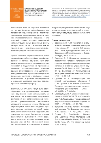 2. 	Говоров, А. И. Оценка актуальности разработки методов использования средств геймификации и игровых технологий в системах управления обучением / А. И. Говоров, М. М. Говорова, Ю. О. Валитова // Компьютерные инструменты в образовании. - 2018. - № 2. - С. 39-54. EDN: VMZCPB