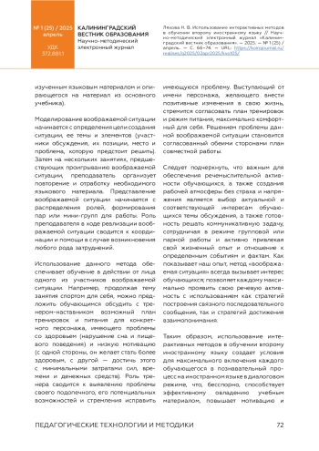 Интеракция, предполагающая взаимодействие, которое оказывает влияние на всех участников посредством обмена эмоциями, личностно значимыми смыслами и отношениями, становится все более актуальной в контексте современного коммуникативного иноязычного образования. Обучение иностранному языку предполагает не просто овладение определенным набором языковых средств изучаемого языка, но, в первую очередь, формирует готовность и способность вступать во взаимодействие, желание услышать и понять собеседника.