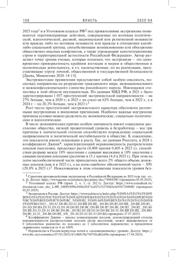 6. Юрчевский С.Д. 2012. Содержание и формы проявления политического экстремизма. - Полицейская деятельность. № 3. С. 36-42. EDN: QARPQZ