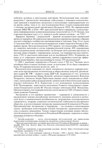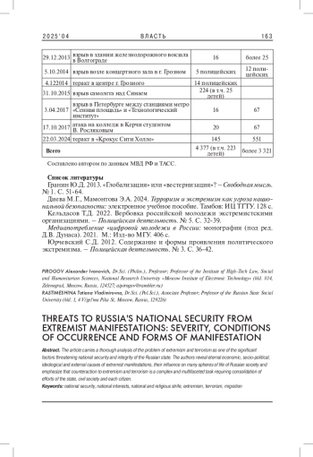 3. Кельдасов Т.Д. 2022. Вербовка российской молодежи экстремистскими организациями. - Полицейская деятельность. № 5. С. 32-39. EDN: LJIPLC