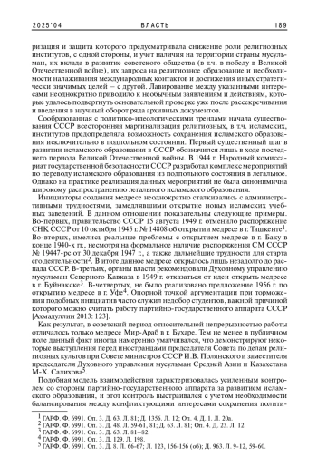 1. 	Ахмадуллин В.А. 2013. Деятельность партийно-государственного аппарата СССР и Духовных управлений мусульман по созданию системы исламского образования на территории Советского Союза (середина 1940-х - конец 1950 гг.). - Вестник ВЭГУ. № 6(68). С. 119-126. EDN: RPYJIB